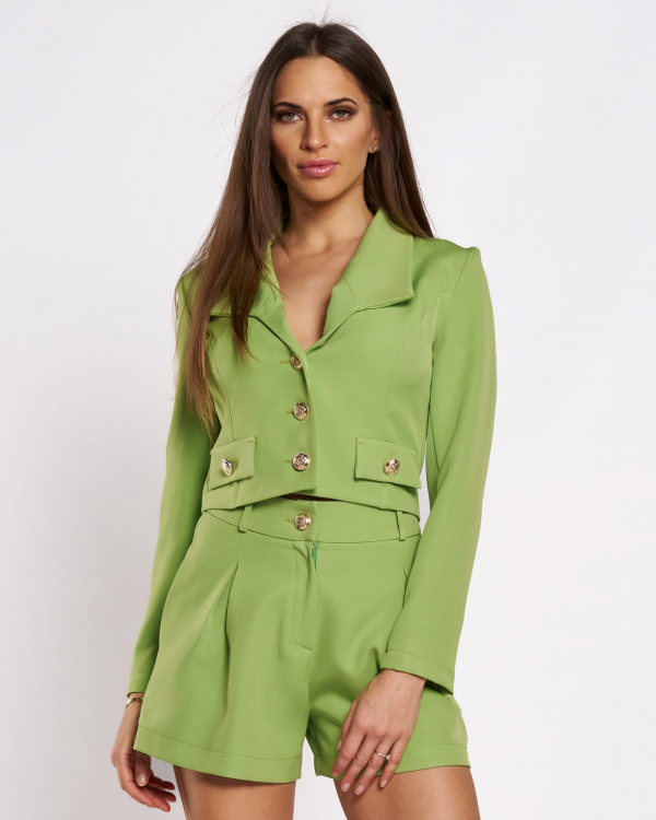 Envy boleró+rövidnadrág dúszgombos, zsebfedős zöld