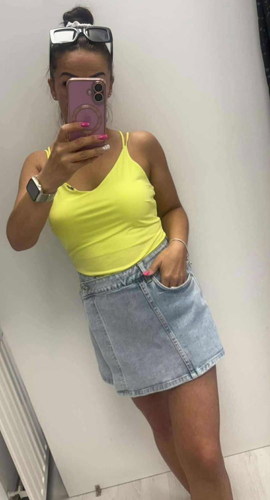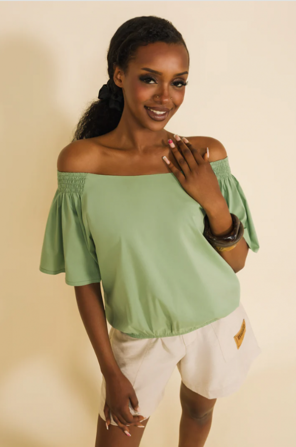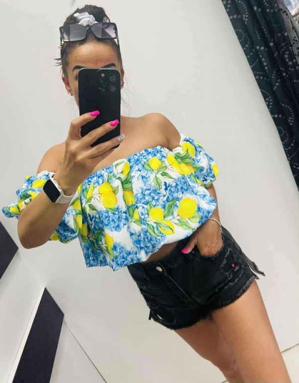 Envy crop top Ejtett vállú, gumis ujjú citrom