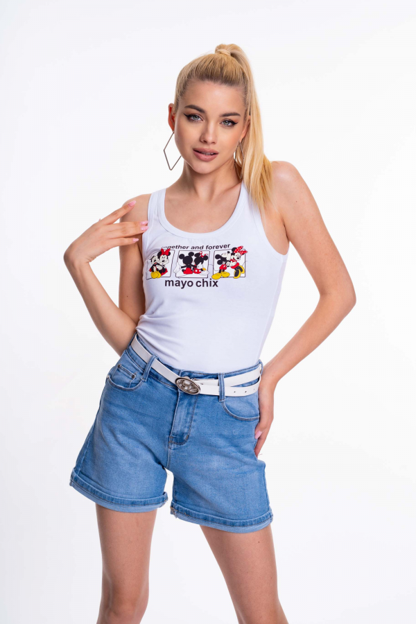 Mayo Chix Corso trikó sport pamut/matrica 'Mickey egér' fehér