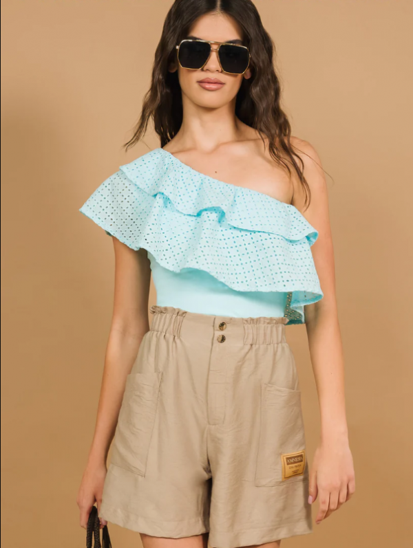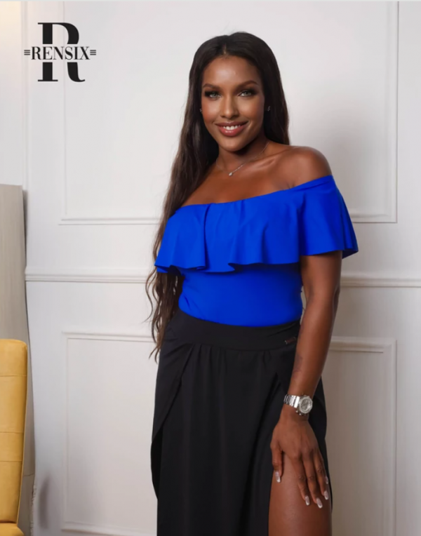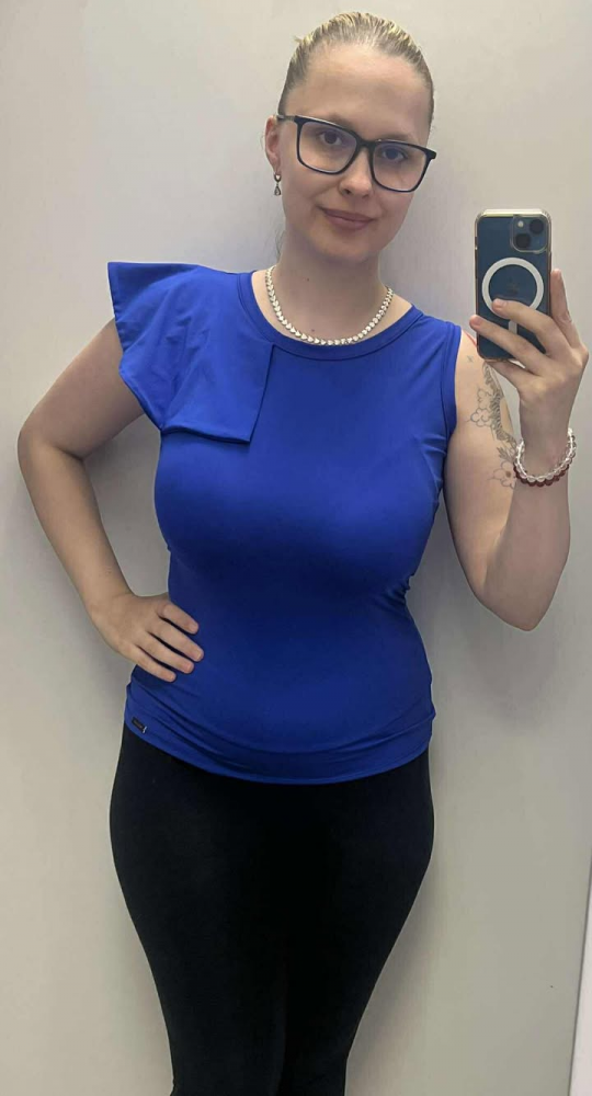 Rensix felső kereknyakú fél vállfodros királykék 2025