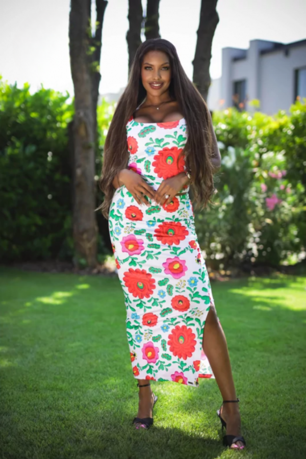 Rensix együttes croptop+szoknya fekete alapon virágos 2025