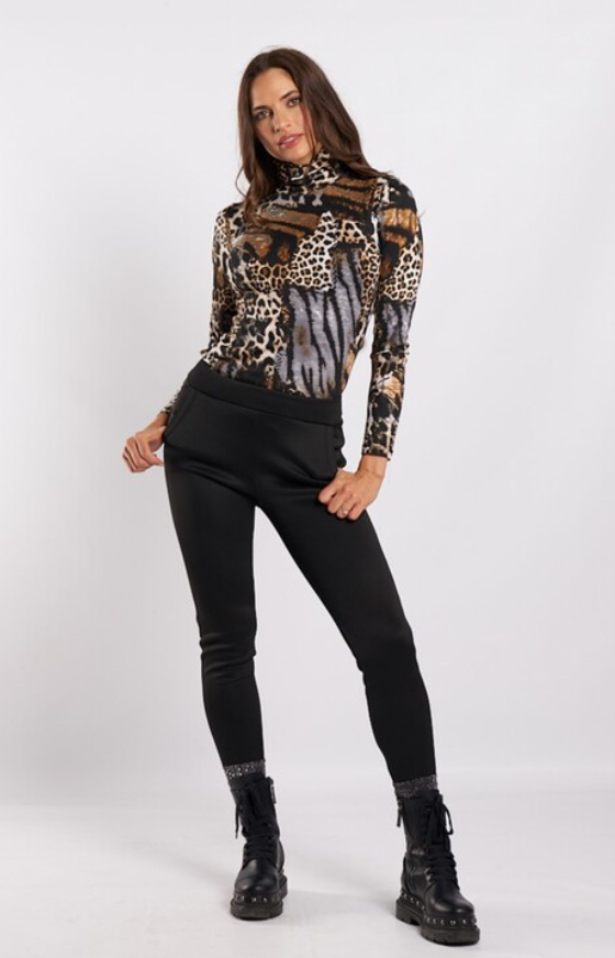 Rensix leggings bőrhatású derekán fém logós fekete 2025