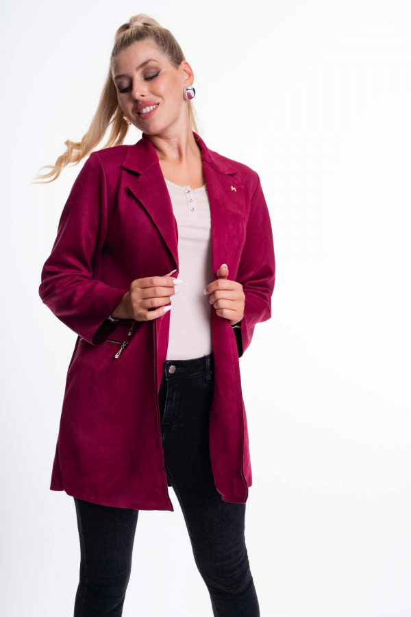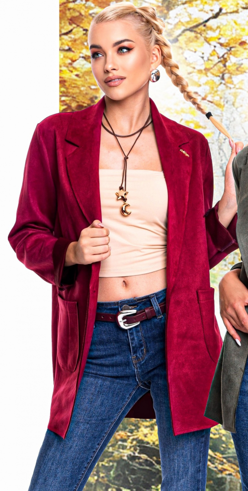 Mayo Chix Nikka blézer velúr hosszú/1 gombos burgundi