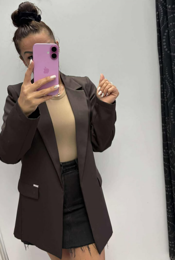 Mayo Chix Nikka blézer velúr hosszú/1 gombos csokoládé