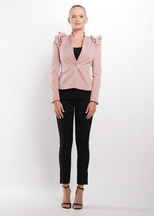 Envy Hosszú ujjú galléros blézer vállán fodorral díszítve rózsaszín