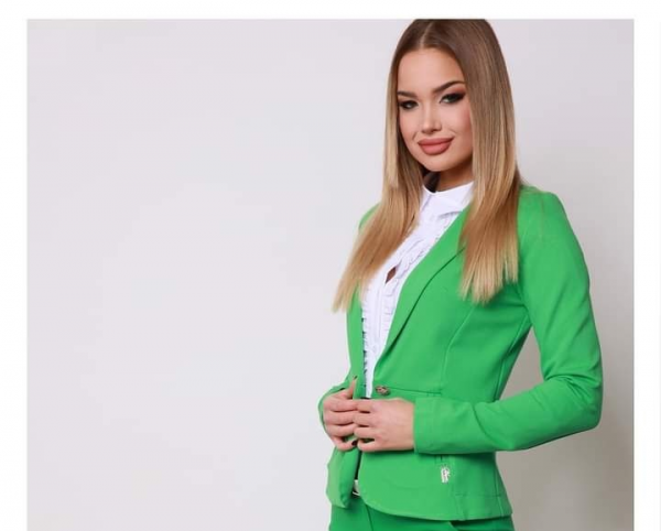 Envy hosszú ujjú galléros rövidített egyszínű blézer zöld